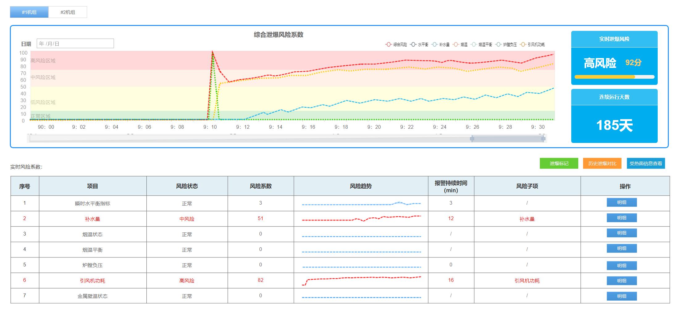 該功能模塊的核心在于構(gòu)建泄爆監(jiān)控指標(biāo),并基于歷史運行的大數(shù)據(jù)尋找指標(biāo)在不同負荷下的合理區(qū)間。主要服務(wù)于日常監(jiān)控和泄爆后的原因分析。
