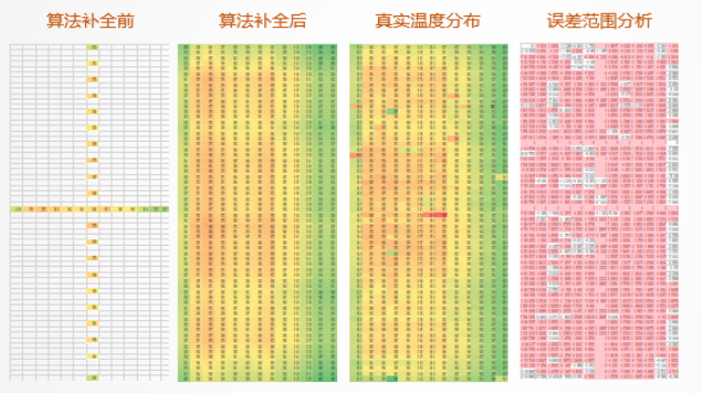 上圖是某電廠的實際熱力圖,如圖所示,算法通過對該電廠鍋爐進行了數(shù)據驗證,整體誤差在10℃以內,足以滿足的運行調整的日常參考需求。通過算法設計,系統(tǒng)可實現(xiàn)基于有限測點的壁溫熱力圖的數(shù)據補全功能。補全后,界面更加美觀,同時更便于運行人員進行受熱面熱偏差的直觀分析。